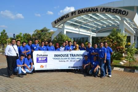 Alhamdullillah HSP Academy kembali dipercaya oleh PT Dahana Persero sebagai penyelenggara training Pengelolaan B3 dan Limbah B3 yang dilaksanakan pada tanggal 29-30 Juli 2015 di KAMPUS Dahana Subang Jawa Barat. Training yang dihadiri oleh 31 orang peserta dari berbagai divisi difasilitasi oleh Instruktur Senior HSP Academy yaitu DR. Alfajri Ismail, M.Sc., MPM. Training yang berlangsung selama dua hari tersebut diikuti secara antusias oleh semua peserta, hal ini terlihat dari banyaknya pertanyaan dan diskusi. Metoda training yang dilakukan oleh instruktur berupa pemaparan materi, diskusi, latihan identifikasi bahaya B3 dengan software, latihan audit manajemen B3, latihan membaca MSDS dan Label B3 dan inspeksi lapangan. Berikut adalah foto-foto training Pengelolaan B3 dan Limbah B3 PT Dahana Persero pada tanggal 29-30 Juli 2015 di Kantor Pusat Manajemen PT Dahana Subang Jawa Barat.